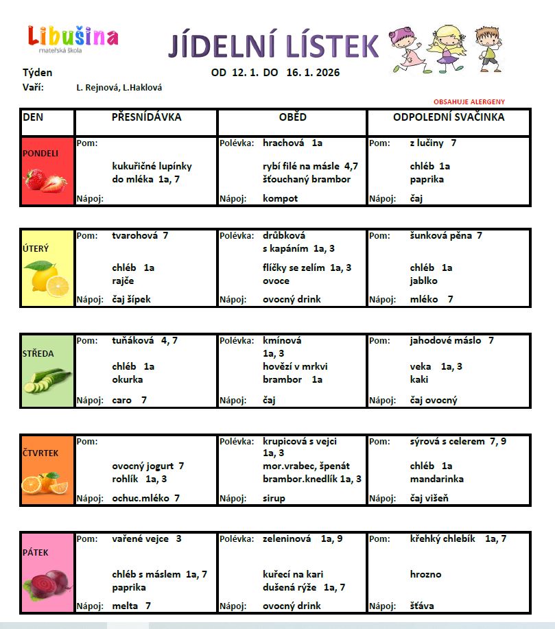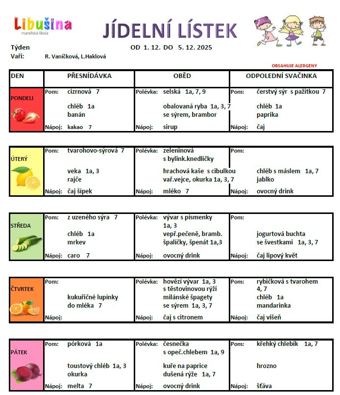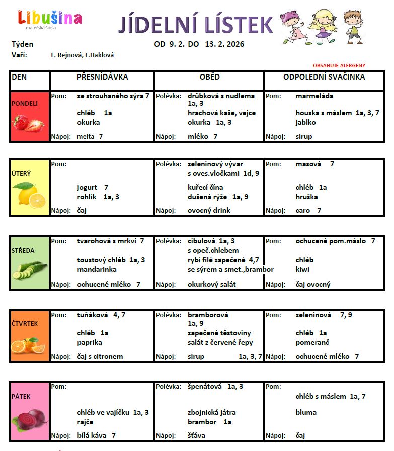 Do ceny oběda je započítána částka 2,-Kč na pitný režim.